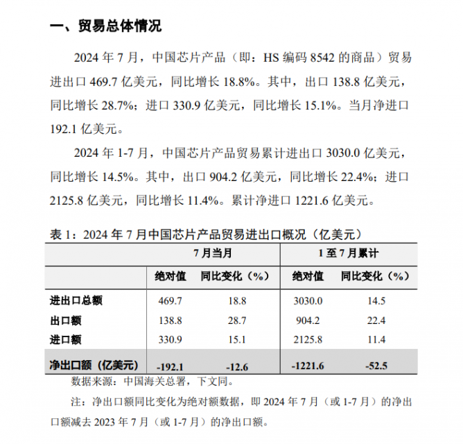 中國芯片產(chǎn)品貿(mào)易月度監(jiān)測報(bào)告(2024年1-7月)