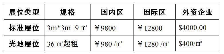 展覽收費標(biāo)準(zhǔn)(提前預(yù)定展位享受會員價格):
