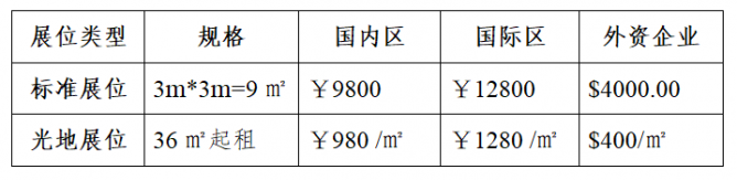 展覽收費標(biāo)準(zhǔn)(提前預(yù)定展位享受會員價格):