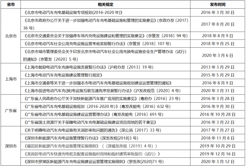 根據(jù)上述國(guó)家層面的部署和要求,各地也針對(duì)新能源汽車充電樁建設(shè)及運(yùn)營(yíng)事宜制定具體的配套管理辦法,并且出臺(tái)了相關(guān)補(bǔ)貼及扶持政策。以北京、上海、廣東為例: