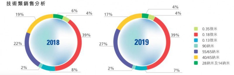 按照不同工藝劃分,90納米及以下先進制程的晶圓收入貢獻比例為50.7%,65/55納米技術(shù)為27.3%,此外,28納米及40納米、90納米、0.13微米、0.15/0.18微米及0.25微米/0.35微米相關(guān)業(yè)務(wù)于2019年繼續(xù)取得穩(wěn)定的收入增長。