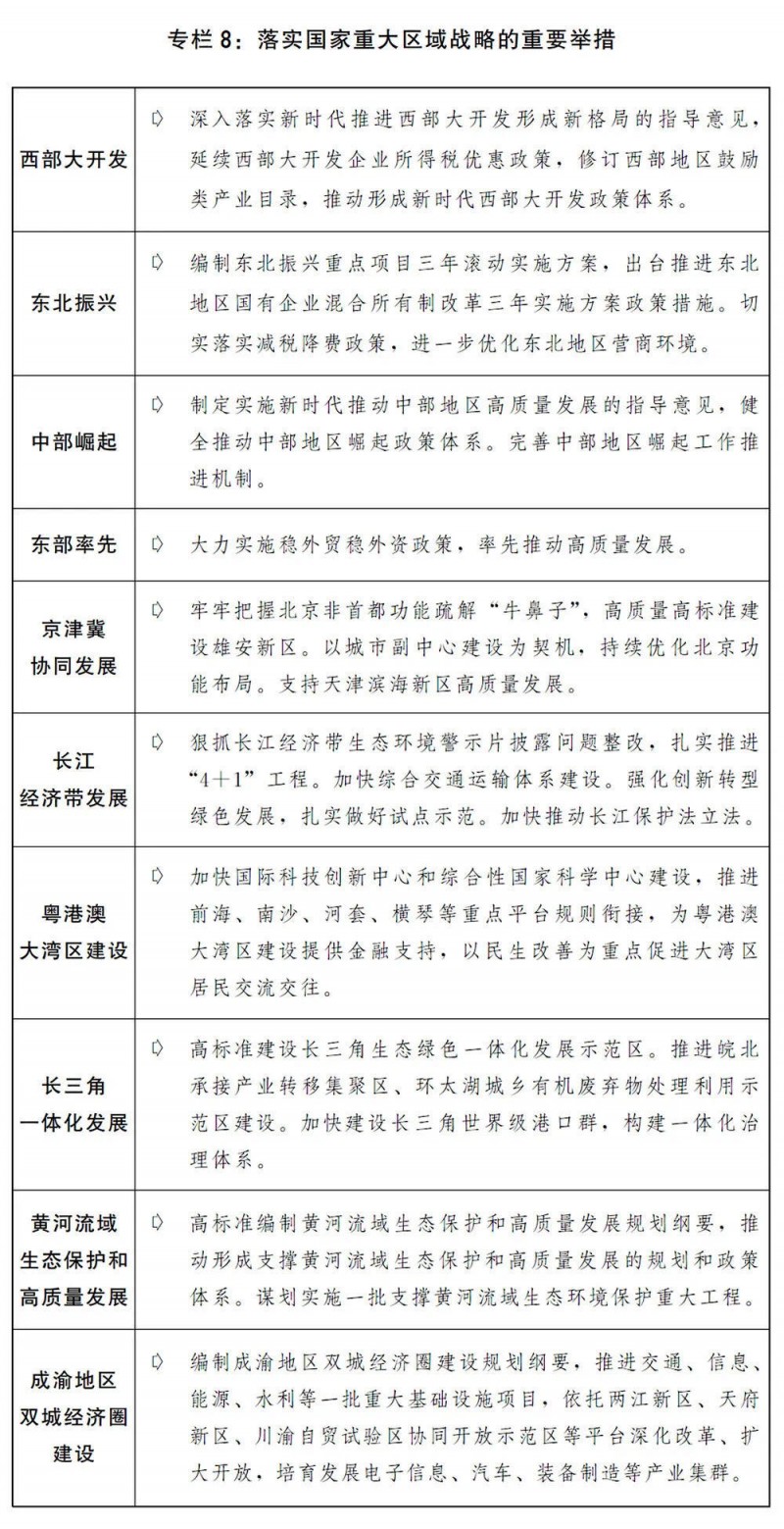 區(qū)域發(fā)展方面,今年將編制東北振興重點(diǎn)項(xiàng)目三年滾動(dòng)實(shí)施方案,出臺(tái)推進(jìn)東北地區(qū)國(guó)有企業(yè)混合所有制改革三年實(shí)施方案政策措施;制定實(shí)施新時(shí)代推動(dòng)中部地區(qū)高質(zhì)量發(fā)展的指導(dǎo)意見(jiàn),健全推動(dòng)中部地區(qū)崛起政策體系;編制成渝地區(qū)雙城經(jīng)濟(jì)圈建設(shè)規(guī)劃綱要,推進(jìn)交通、信息、能源、水利等一批重大基礎(chǔ)設(shè)施項(xiàng)目。