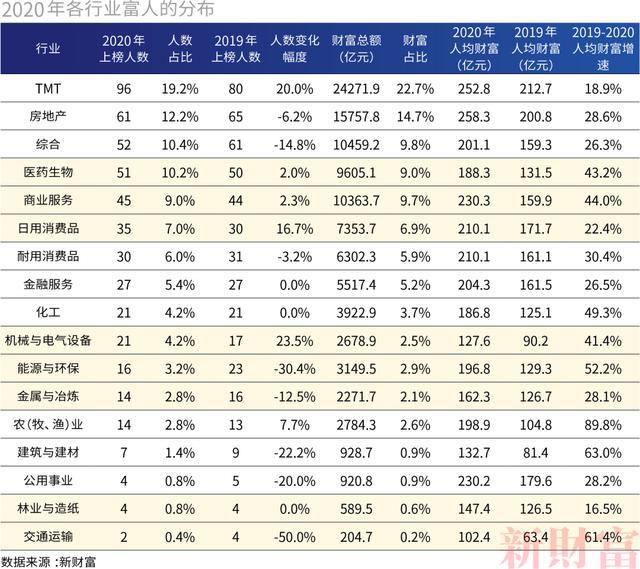 2010年,富人榜上還是“人人都是土財(cái)主”,今天,中國最突出的創(chuàng)富引擎已經(jīng)轉(zhuǎn)軌為TMT行業(yè)。500名中國最富有的人士中,已有高達(dá)96人產(chǎn)自TMT行業(yè),占據(jù)了近1/5的版圖,這一人數(shù)比地產(chǎn)富人高出了50%。