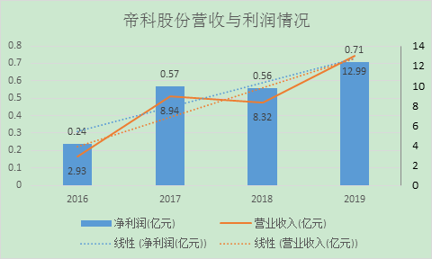 公司招股說明書顯示,過去四年公司營收與利潤均高速增長,2016-2019年公司營業(yè)收入由2.93億元,增長到12.99億元,增長超過300%,營業(yè)收入年復(fù)合增長率達(dá)到64.28%;與此同時,公司凈利潤從2358.01萬元,增長到7070.42萬元,公司凈利潤增長也達(dá)到195.83%,,年復(fù)合增長率為43.55%。