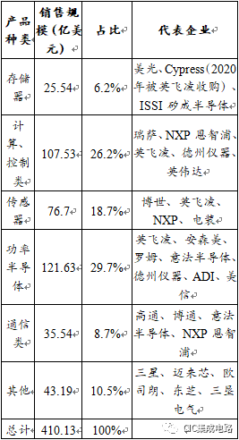 表2:汽車半導(dǎo)體產(chǎn)品結(jié)構(gòu)及市場(chǎng)份額