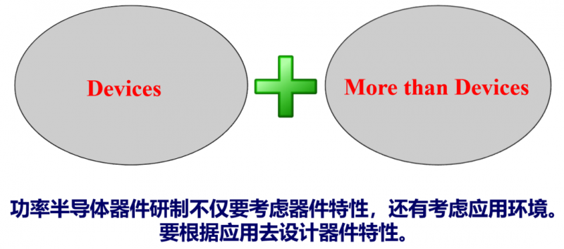 同時(shí)功率半導(dǎo)體器件研制不僅要考慮器件特性,還有考慮應(yīng)用環(huán)境。要根據(jù)應(yīng)用去設(shè)計(jì)器件特性,可以稱之為超越器件(More than Devices)。