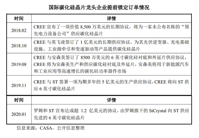 因此國內(nèi)外下游廠家,紛紛和科銳(Cree)等碳化硅龍頭簽訂長期合約鎖定產(chǎn)能。