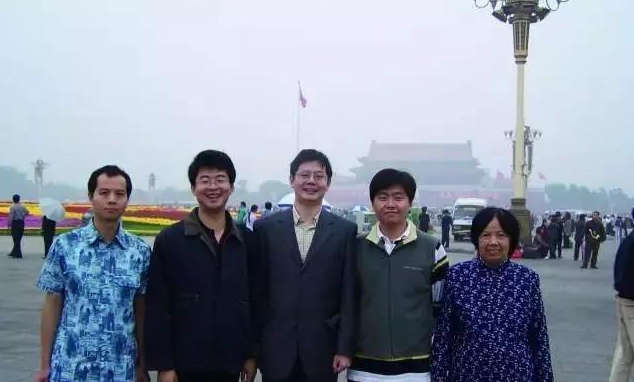 2004年黃令儀老師(右一)與胡偉武老師(右三)及龍芯課題組成員