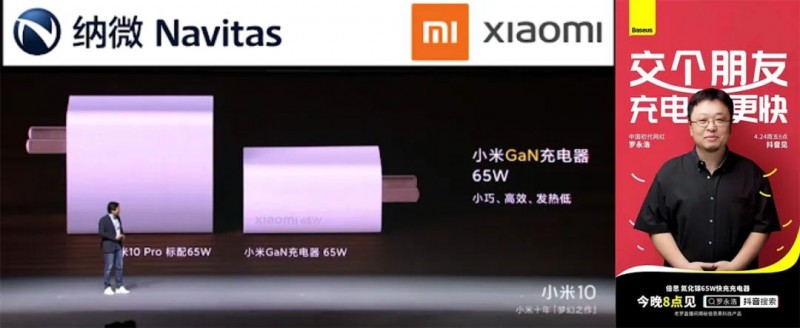 2020年是快充市場快速發(fā)展的重要年份,隨著市場不斷成熟和趨勢日益明確,消費者對小尺寸和大功率快速充電器需求越來越大。自從雷軍在米10 Pro系列手機發(fā)布會上推出65W氮化鎵快充,羅永浩直播賣貨倍思65W 2C1A多口氮化鎵快充,這兩位流量大咖的高調(diào)代言把65W功率快充完全展示在大眾的視野。