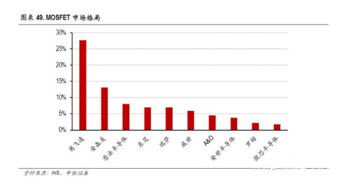 從全球MOSFET市場(chǎng)格局來看,歐美及日系廠商占據(jù)主要地位,僅英飛凌、安森美、瑞薩三家份額就接近了50%。但隨著如今國(guó)產(chǎn)替代熱潮的持續(xù),不少下游廠商開始嘗試使用國(guó)產(chǎn)分立器件產(chǎn)品替代進(jìn)口產(chǎn)品。