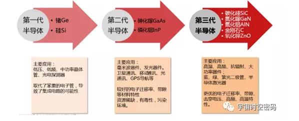 第一代半導(dǎo)體材料,屬于間接帶隙,窄帶隙;第二代半導(dǎo)體材料,直接帶隙,窄帶隙;第三代半導(dǎo)體材料,寬禁帶,全組分直接帶隙。