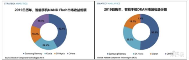 作為存儲(chǔ)芯片生產(chǎn)廠(chǎng)商的三星和SK海力士,一直是國(guó)內(nèi)智能手機(jī)存儲(chǔ)芯片的供應(yīng)商,包括華為、小米、OPPO、vivo在內(nèi)的廠(chǎng)商均是其二者的客戶(hù)。三星、SK海力士?jī)杉翼n國(guó)企業(yè)和美光一家美國(guó)公司,幾乎壟斷了全球智能手機(jī)存儲(chǔ)近九成的市場(chǎng)。