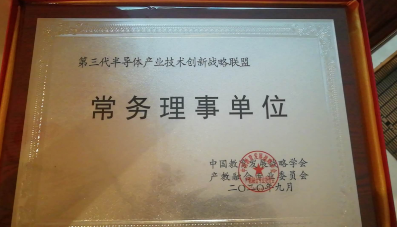 第三代半導(dǎo)體產(chǎn)業(yè)技術(shù)創(chuàng)新戰(zhàn)略聯(lián)盟獲頒“中國(guó)教育發(fā)展戰(zhàn)略學(xué)會(huì)產(chǎn)教融合專(zhuān)業(yè)委員會(huì)”常務(wù)理事單位