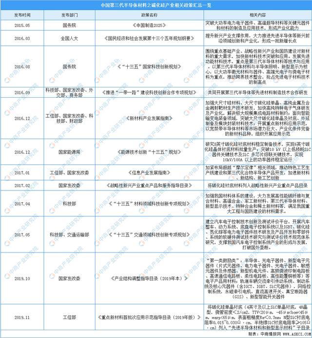 以下政策法規(guī)的發(fā)布和落實(shí),為碳化硅半導(dǎo)體材料的發(fā)展提供了良好的政策環(huán)境,推動(dòng)了碳化硅晶片產(chǎn)業(yè)近年來(lái)迅速發(fā)展。