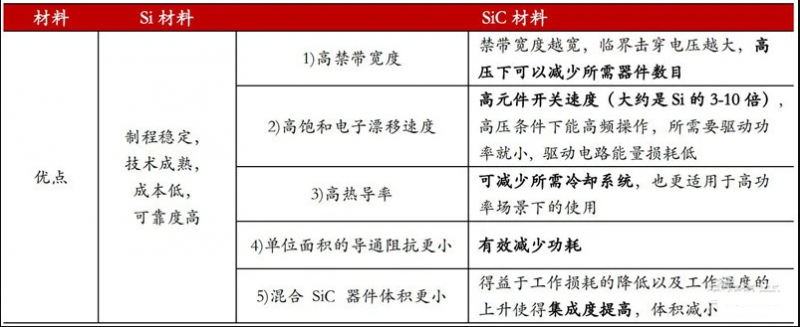 ▲Si 與 SiC 材料優(yōu)缺點(diǎn)對(duì)比