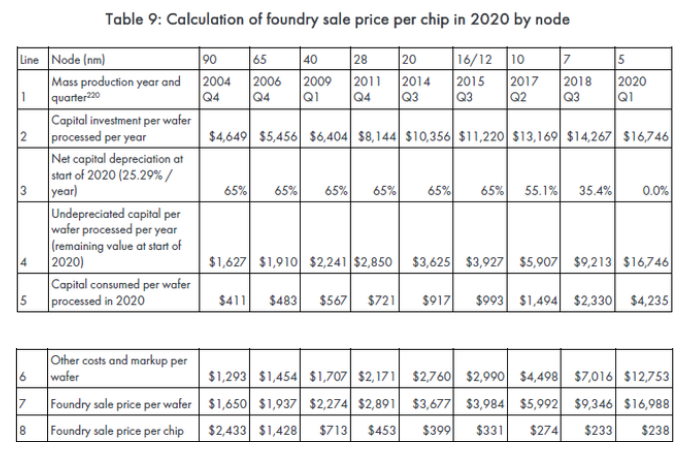 CSET的成本模型使用的是無晶圓廠的角度,包含建造工廠的成本、材料、人工,制造研發(fā)和利潤等。芯片制造出來后,將外包給芯片測試和封裝(ATP)公司。
