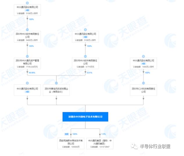 天眼查App顯示,此次工商變更后,該公司由中興通訊股份有限公司、深圳市賽佳訊投資發(fā)展企業(yè)(有限合伙)、深圳市仁興科技有限責任公司共同持股。股權穿透顯示,后兩家公司均為中興通訊股份有限公司旗下公司。