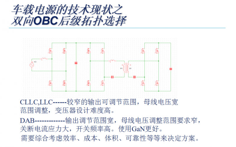 電動(dòng)汽車車載電源系統(tǒng)的前景,更大的慢充充電功率,更高的功率密度。充電功率最大滿載22KW.功能安全概念的提出,DCDC的可靠性要求提高,在ASIL的C級(jí)以上要求提出后,需要兩路DCDC冗余。為了保持功率密度不變。器件共用一直是電動(dòng)汽車行業(yè)降低零部件成本,減小整車重量,提高續(xù)航能力的方法之一。