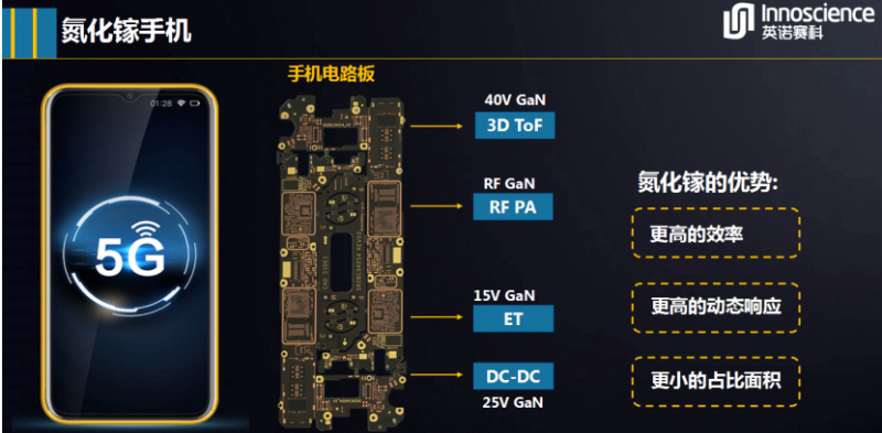 從GaN的應(yīng)用機(jī)會來看,GaN在數(shù)據(jù)中心、氮化鎵手機(jī)、新能源汽車上有很大的應(yīng)用機(jī)會。其中,英偉達(dá)首次在AI數(shù)據(jù)處理系統(tǒng)中使用GaN,GaN用于數(shù)據(jù)中心可以大幅度提升效率降低能耗。市場爆發(fā)前夕生態(tài)與應(yīng)用是兩個重要信號,智能化時代,到2025年氮化鎵產(chǎn)業(yè)生態(tài)鏈有望達(dá)到千億級市場規(guī)模。
