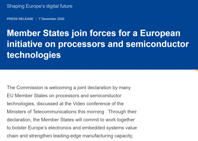 當?shù)貢r間周一,德國、法國、西班牙等十三個歐盟國家發(fā)表官方聯(lián)合聲明,宣布將共同投資芯片和半導體技術,以增強該區(qū)域在數(shù)字時代的核心競爭力。