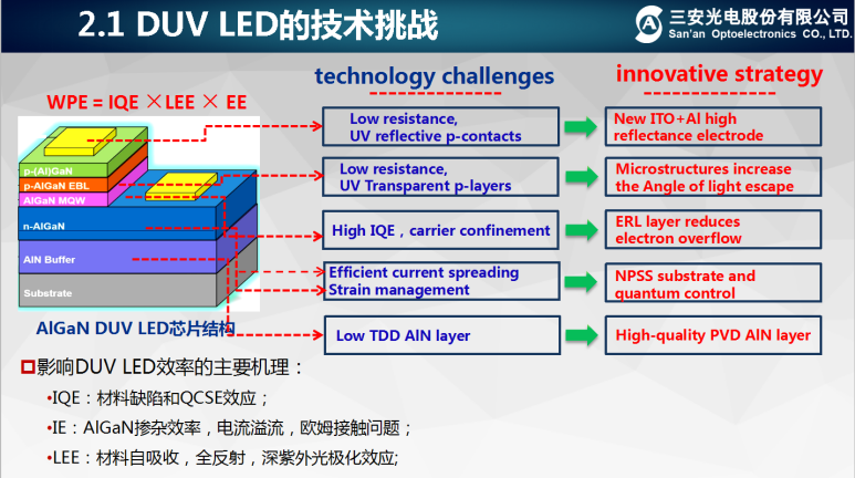 然而,AlGaN基DUV-led的實(shí)際應(yīng)用還存在一些技術(shù)問(wèn)題。而提高器件的外量子效率(EQE)是目前急需解決的主要問(wèn)題之一,它通常低于10%,且受內(nèi)部量子效率(IQE)和光提取效率(LEE)的影響。