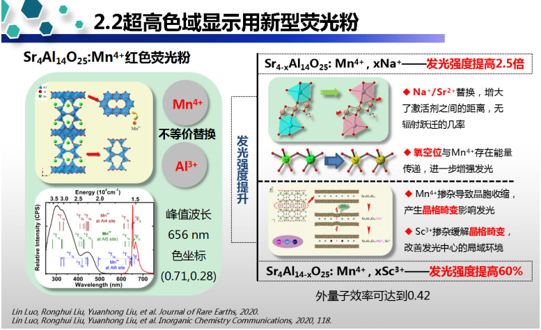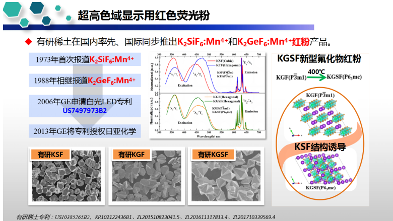 結合具體的數(shù)據與指標以及有研稀土的科技創(chuàng)新工作,報告介紹了超高色域顯示用紅色熒光粉、綠色熒光粉,超高色域顯示用新型紅色熒光粉、綠色熒光粉以及超高色域顯示技術的進展與挑戰(zhàn)等內容。
