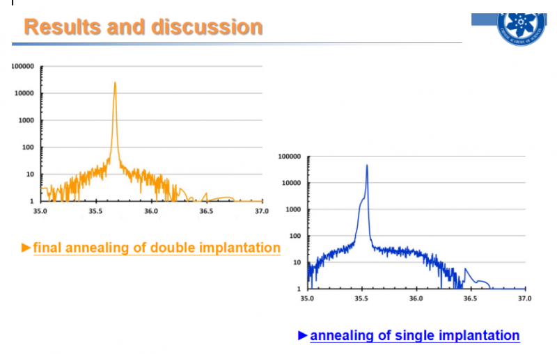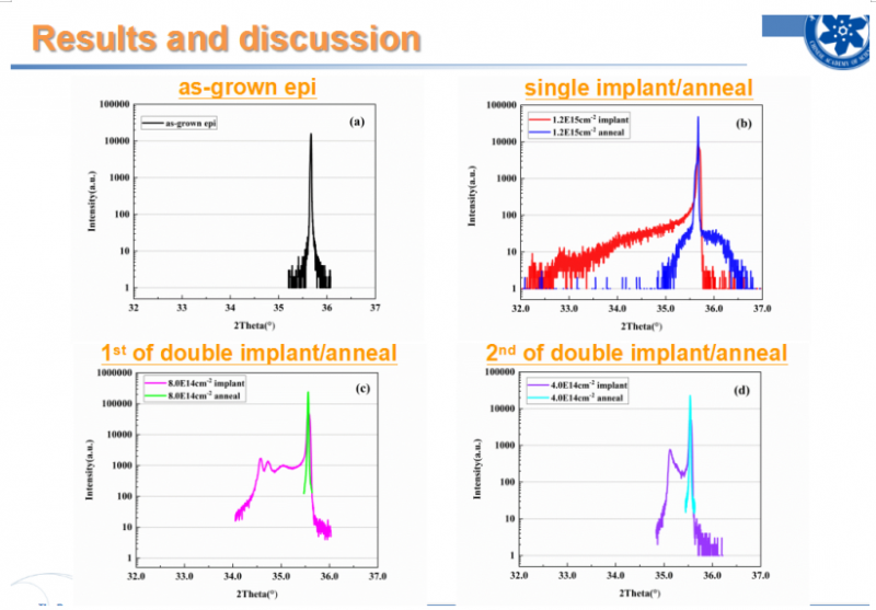 報告結(jié)合具體的實驗過程飛,分享了最新研究成果。報告顯示,在總劑量為1.2×1015cm-2的情況下,雙注入和室溫退火比單次注入和退火大大減少了晶格損傷;雙注入的總劑量可提高到1.5-2.0×1015cm-2,但熱注入仍是達到高劑量的最有效方法。熱注入和雙注入應(yīng)涉及不同的缺陷機制。