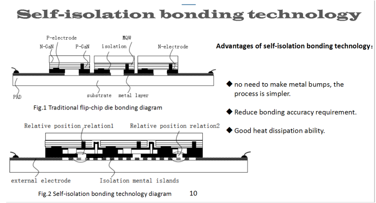 結(jié)合具體的數(shù)據(jù),研究提出了一種新穎的倒裝式led封裝方法,稱之為自對(duì)準(zhǔn)隔離“技術(shù)”,該技術(shù)可以提高器件的散熱能力,保證芯片的導(dǎo)電性,有效地優(yōu)化封裝的對(duì)準(zhǔn)精度。