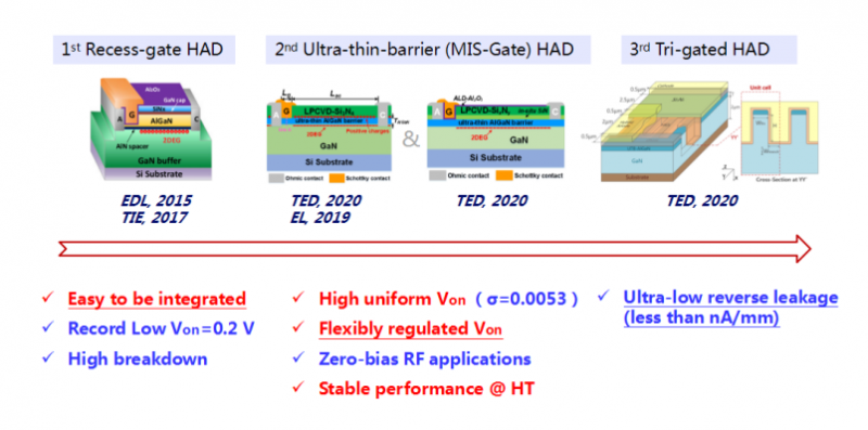 期間,由廣東芯聚能半導(dǎo)體有限公司,中電化合物半導(dǎo)體有限公司,英諾賽科(珠海)科技有限公司共同協(xié)辦的功率電子器件及封裝技術(shù)分會(huì)上,電子科技大學(xué)教授周琦分享了基于超薄勢(shì)壘AlGaN/GaN異質(zhì)結(jié)與混合陽(yáng)極二極管技術(shù)的微波混頻器與功率整流器的最新進(jìn)展。