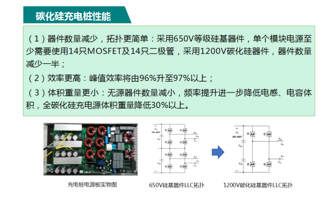 碳化硅器件在電動(dòng)汽車充電領(lǐng)域的應(yīng)用方面,碳化硅器件將在車載充電(OBC)、DC/DC、無(wú)線充電等方面將快速替代硅基IGBT。根據(jù)國(guó)內(nèi)外相關(guān)公司調(diào)研和業(yè)界專家的判斷,碳化硅器件滲透硅基IGBT的拐點(diǎn)可能在2024年附近,預(yù)計(jì)2025年滲透率超過(guò)25%。