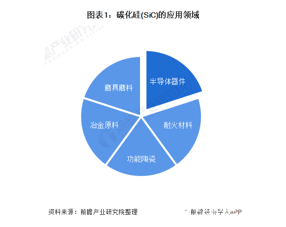 碳化硅(SiC)又名碳硅石、金剛砂,是一種無機物,是用石英砂、石油焦(或煤焦)、木屑等原料通過電阻爐高溫冶煉而成。碳化硅(SiC)主要應用于磨具磨料、冶金原料、半導體器件等領(lǐng)域,其中,在半導體器件領(lǐng)域,碳化硅是第三代半導體材料的代表之一。