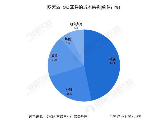 在半導體應用中,SiC主要用于電力電子器件的制造。從SiC器件制造流程順序來看,SiC器件的制造成本中,SiC襯底成本占比50%,SiC外延的成本占比25%,這兩大工序是SiC器件的重要組成部分:
