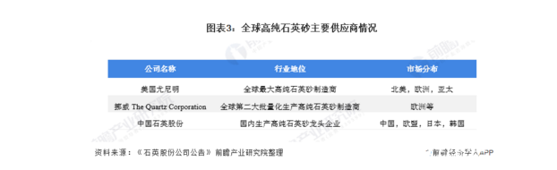 在上游原料供應方面,高純石英砂是碳化硅的主要原料之一。因高純石英砂的制備成本高、加工工藝要求高,因此目前全球具備批量生產(chǎn)高純石英砂的廠商較少。在國外廠商方面,尤尼明、The Quartz Corporation是主要供應商;在國內(nèi)廠商方面,石英股份是目前國內(nèi)生產(chǎn)高純石英砂龍頭企業(yè):