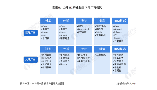 碳化硅(SiC)又名碳硅石、金剛砂,是第三代半導體材料的代表之一,SiC主要用于電力電子器件的制造。受新能源汽車、工業(yè)電源等應用的推動,全球電力電子碳化硅的市場規(guī)模不斷增長,預計2020年的市場規(guī)模將達6億美元。在競爭格局方面,行業(yè)龍頭企業(yè)的經(jīng)營模式以IDM模式為主,主要的市場份額被Infineon、Cree、羅姆以及意法半導體占據(jù),國內(nèi)外廠商的競爭差距較大。