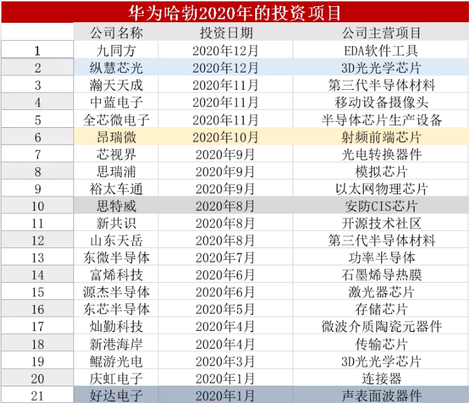 portant; overflow-wrap: break-word !important;">2020年已過(guò),這一年,華為和小米的投資戰(zhàn)略似乎已進(jìn)入到了輕車(chē)熟路的階段。據(jù)不完全統(tǒng)計(jì),華為哈勃在過(guò)去一年共計(jì)投資了21家半導(dǎo)體公司。小米更甚,共投資了30家半導(dǎo)體公司。從兩家所投資的企業(yè)來(lái)看,可以說(shuō)在半導(dǎo)體材料、芯片設(shè)計(jì)、半導(dǎo)體設(shè)備等產(chǎn)業(yè)鏈上的各個(gè)環(huán)節(jié)都有布局。但細(xì)細(xì)來(lái)看,“英雄所見(jiàn)略同”,兩家都看中了一些相同的芯片機(jī)會(huì)。