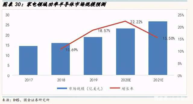 隨著5G帶來的萬物互聯(lián)及基站、數(shù)據(jù)中心數(shù)量的迅猛增長,及汽車電子化程度的不斷提升,MOSFET及IGBT有望持續(xù)放量,帶動功率半導(dǎo)體市場實現(xiàn)較快增長。