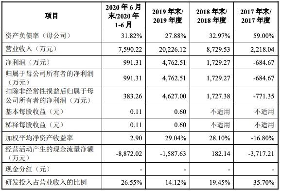 2017年至2020年1-6月,芯碁微裝營業(yè)收入分別為2218.04萬元、8729.53萬元、2.02億元、7590.22萬元,歸母凈利潤分別為-684.67萬元、1729.27萬元、4762.51萬元、991.31萬元。