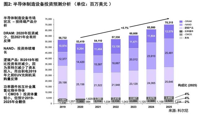 據(jù)SEMI(國際半導體產(chǎn)業(yè)協(xié)會)預測,2020年半導體生產(chǎn)設(shè)備市場較2019年會增長15%,增至549億美元(約人民幣3843億元),創(chuàng)下歷史新高。存儲芯片泡沫破滅帶來的下降行情預計在2021年見底反彈,之后以每年約5%-6%的速度增長。5G,以及新冠疫情對在線經(jīng)濟的需求都是半導體產(chǎn)業(yè)下一輪增長的關(guān)鍵驅(qū)動力。