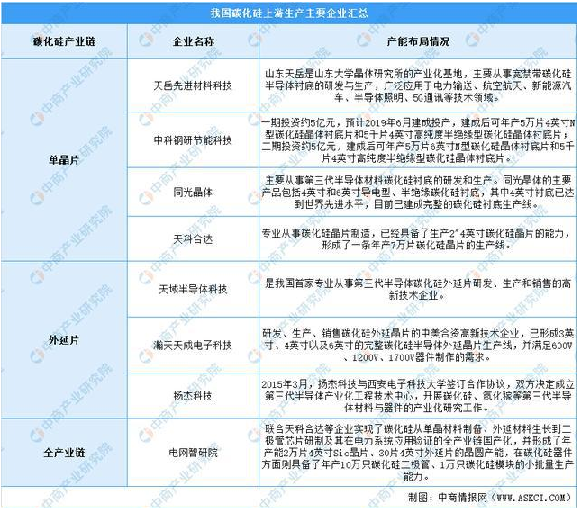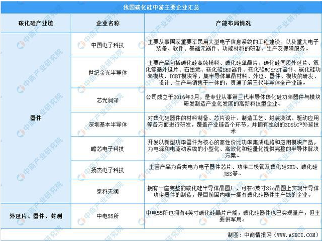 近年來國內(nèi)已初步建立起相對完整的碳化硅產(chǎn)業(yè)鏈體系,包括有IDM廠商中車時代電氣、世紀金光、泰科天潤、揚杰電子等,單晶襯底企業(yè)山東天岳、天科合達、同光晶體等,外延片企業(yè)天域半導(dǎo)體、瀚天天成等,部分廠商已取得階段性進展。