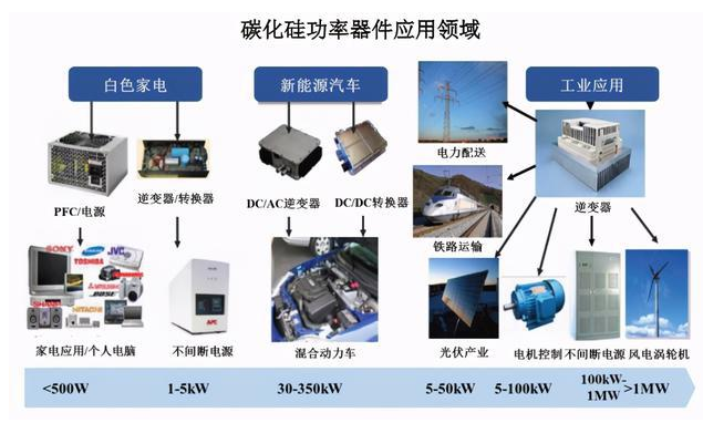 功率器件是電力電子行業(yè)的重要基礎(chǔ)元器件之一,廣泛應(yīng)用于電力設(shè)備的電能轉(zhuǎn)化和電路控制等領(lǐng)域。碳化硅功率器件以其優(yōu)異的耐高壓、耐高溫、低損耗等性能,能夠有效滿足電力電子系統(tǒng)的高效率、小型化和輕量化要求,在新能源汽車、光伏發(fā)電、軌道交通、智能電網(wǎng)等領(lǐng)域具有明顯優(yōu)勢。
