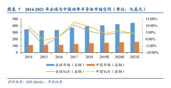 功率半導(dǎo)體是實(shí)現(xiàn)設(shè)備電氣性能的必備要素,廣泛應(yīng)用于消費(fèi)電子、工業(yè)、汽車電子等領(lǐng)域,總體市場空間超 400 億美金,中國占全球需求的 35%以上,且市場增速顯著高于全球,隨著 5G 帶來的萬物互聯(lián)及基站、數(shù)據(jù)中心數(shù)量的迅猛增長,及汽車電子化程度的不斷提升,MOSFET 及 IGBT 有望持續(xù)放量,帶動功率半導(dǎo)體市場實(shí)現(xiàn)較快增長。