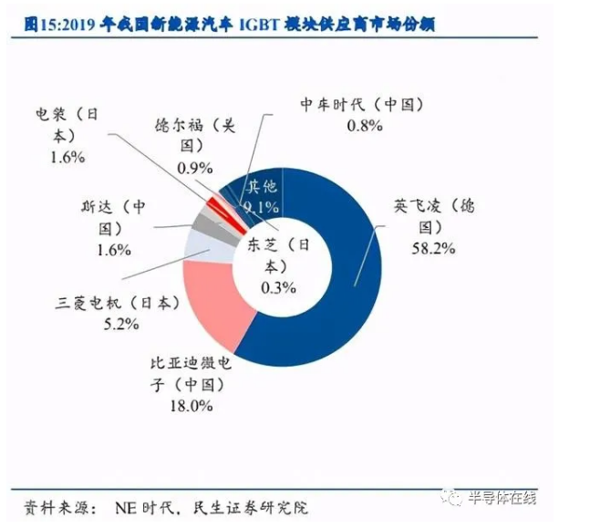 據 Omdia 2019 年統(tǒng)計數據,全球 IGBT 模塊前十大廠商占據了 76%份額,市場份額集 中,競爭格局較好。車規(guī)級 IGBT 方面,由于較高的行業(yè)壁壘,2019 年中國新能源汽車 IGBT 模塊 CR4 份額合計達 81%,呈現寡頭壟斷格局。其中,英飛凌市占率 58.2%排名 第一,比亞迪市占率 18%排名第二,三菱電機、賽米控分列第三、第四。車用 IGBT 憑 借廣闊的成長空間和良好的競爭格局已成為成長行業(yè)中的“優(yōu)質賽道”。但 2019 年中國 新能源汽車 IGBT 前十大廠商中僅有比亞迪、斯達半導及中車時代電氣三家國內廠商入圍,市場份額合計 20.4%,國產替代空間廣闊。
