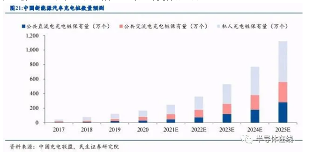 除了份額提升外,國內 IGBT 廠商還將充分受益國內車用 IGBT 市場空間的快速增長。據我們測算,預計 2025 年中國新能源汽車用 IGBT 市場規(guī)模達 177 億元,復合增速為 43.45%, 2025 年中國新能源車充電樁 IGBT 市場空間將達 147 億元,復合增速為 43.45%。