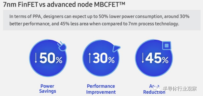 早在2019年,三星推出的的3GAE工藝設(shè)計(jì)套件版本0.1就包括四種不同的納米片寬度,以為早期采用者提供一定的靈活性,盡管目前尚不清楚該公司是否增加了寬度以提供額外的靈活性。但是三星表示,總的來說,與7LPP技術(shù)相比,其3GAE節(jié)點(diǎn)將使性能提高30%(在相同的功率和復(fù)雜度下),功耗降低50%(在相同的時鐘和復(fù)雜度下),并且晶體管密度提高了80%(包括邏輯和SRAM晶體管的混合)。