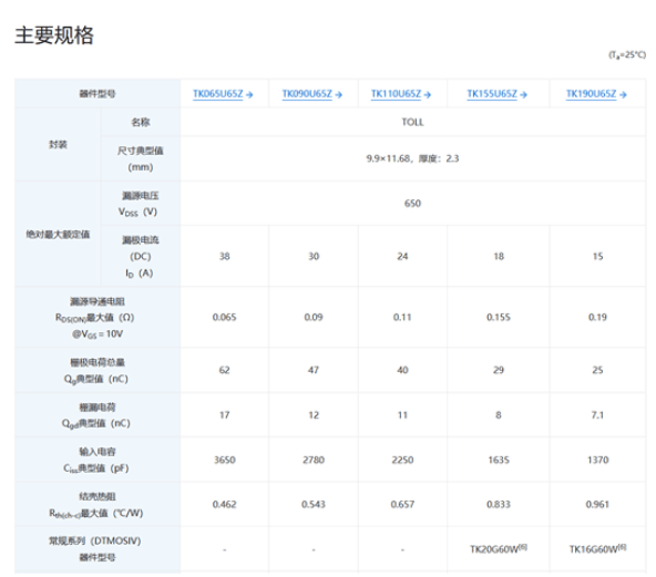 3月12日消息,東芝電子元件及存儲裝置株式會社(“東芝”)昨日宣布,在其TOLL(TO-無引線)封裝的DTMOSVI系列中推出650V超級結(jié)功率MOSFET--- TK065U65Z、TK090U65Z、TK110U65Z、TK155U65Z和TK190U65Z,今日開始批量出貨。