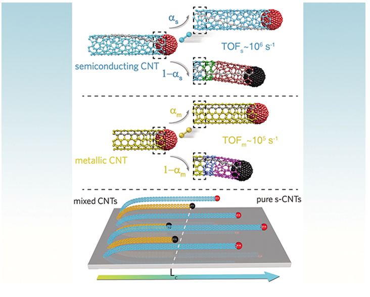 2019年,清華大學(xué)化學(xué)工程系魏飛教授團(tuán)隊(duì),實(shí)現(xiàn)在長度達(dá)到154mm后可實(shí)現(xiàn)99.9999%超長半導(dǎo)體管陣列的一步法制備,為制備結(jié)構(gòu)完美、高純半導(dǎo)體管水平陣列這一世界性難題提供了一項(xiàng)全新的技術(shù)路線,對新一代碳基電子材料的可控制備具有重要價(jià)值。
