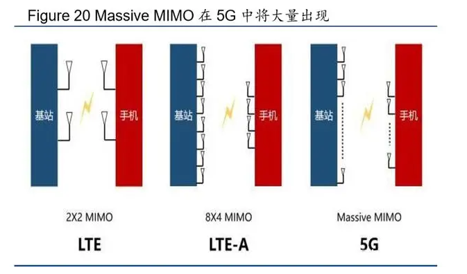 1、宏基站射頻元器件數(shù)量大增,GaN 滲透率有望持續(xù)提升