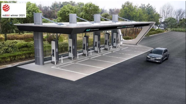 “E-pit”充電站擁有時(shí)尚簡(jiǎn)潔的頂棚設(shè)計(jì),展現(xiàn)了當(dāng)代極簡(jiǎn)設(shè)計(jì)理念。讓充電不受天氣的影響,即使在雨天,顧客也可充電。該充電樁已經(jīng)實(shí)現(xiàn)了“Plug & Charge(即插即用)的功能,用戶通過(guò)手機(jī)APP極大簡(jiǎn)化充電流程,并且不需要手動(dòng)進(jìn)行驗(yàn)證和付款,只需要通過(guò)簡(jiǎn)單地連接充電樁,儲(chǔ)存在電動(dòng)汽車中的認(rèn)證信息即可完成充電認(rèn)證,并開啟自動(dòng)充電功能。此充電樁可為配備現(xiàn)代·起亞汽車800V充電系統(tǒng)的專屬電動(dòng)車型提供超高速充電。用戶可在14分鐘之內(nèi)將電池電量從30%充至80%。