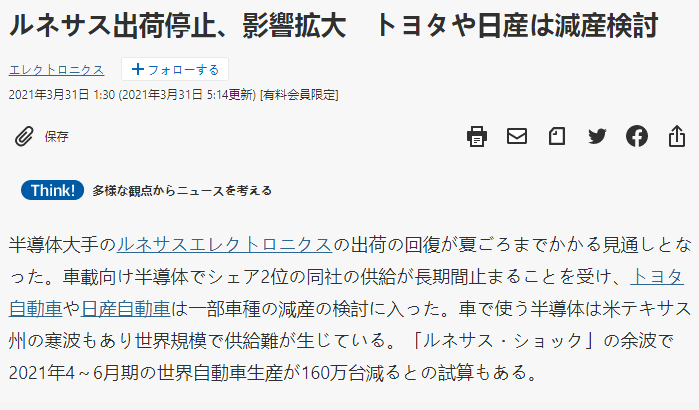 全球各大車廠持續(xù)評(píng)估此次火災(zāi)對(duì)于自家汽車生產(chǎn)沖擊,包括豐田、現(xiàn)代、福特與日產(chǎn)都是瑞薩客戶。受到全球芯片短缺影響,部分車廠先前便已宣布大砍產(chǎn)能。