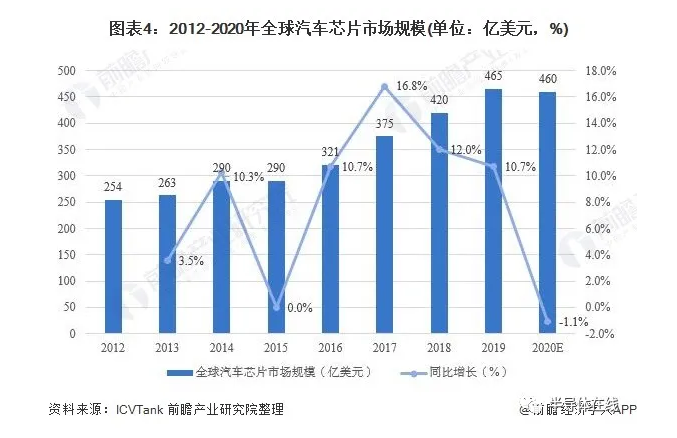 受全球新冠疫情的影響,在汽車銷量快速下滑的沖擊下,2020年全球芯片市場規(guī)模將有小幅下滑,預(yù)計規(guī)模為460億美元。